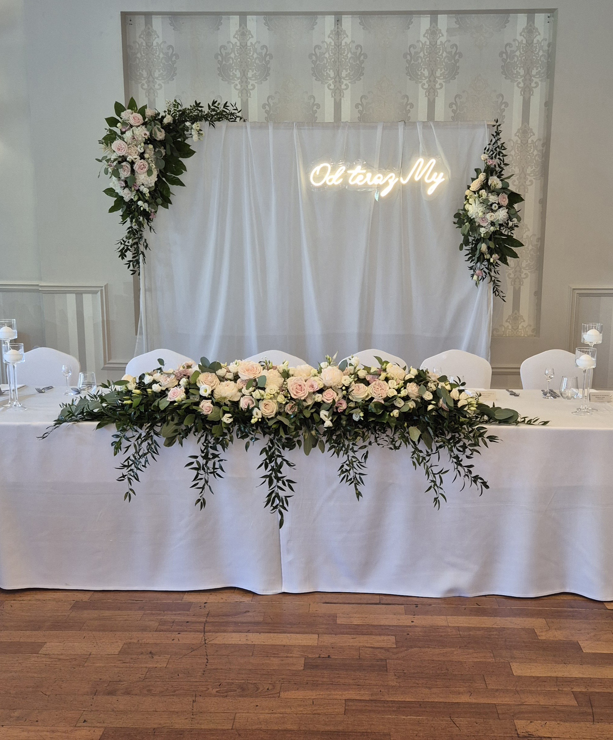 doskonałe tło dla fotografii czy element centralny dekoracji w postaci ścianki za Parą Młodą.